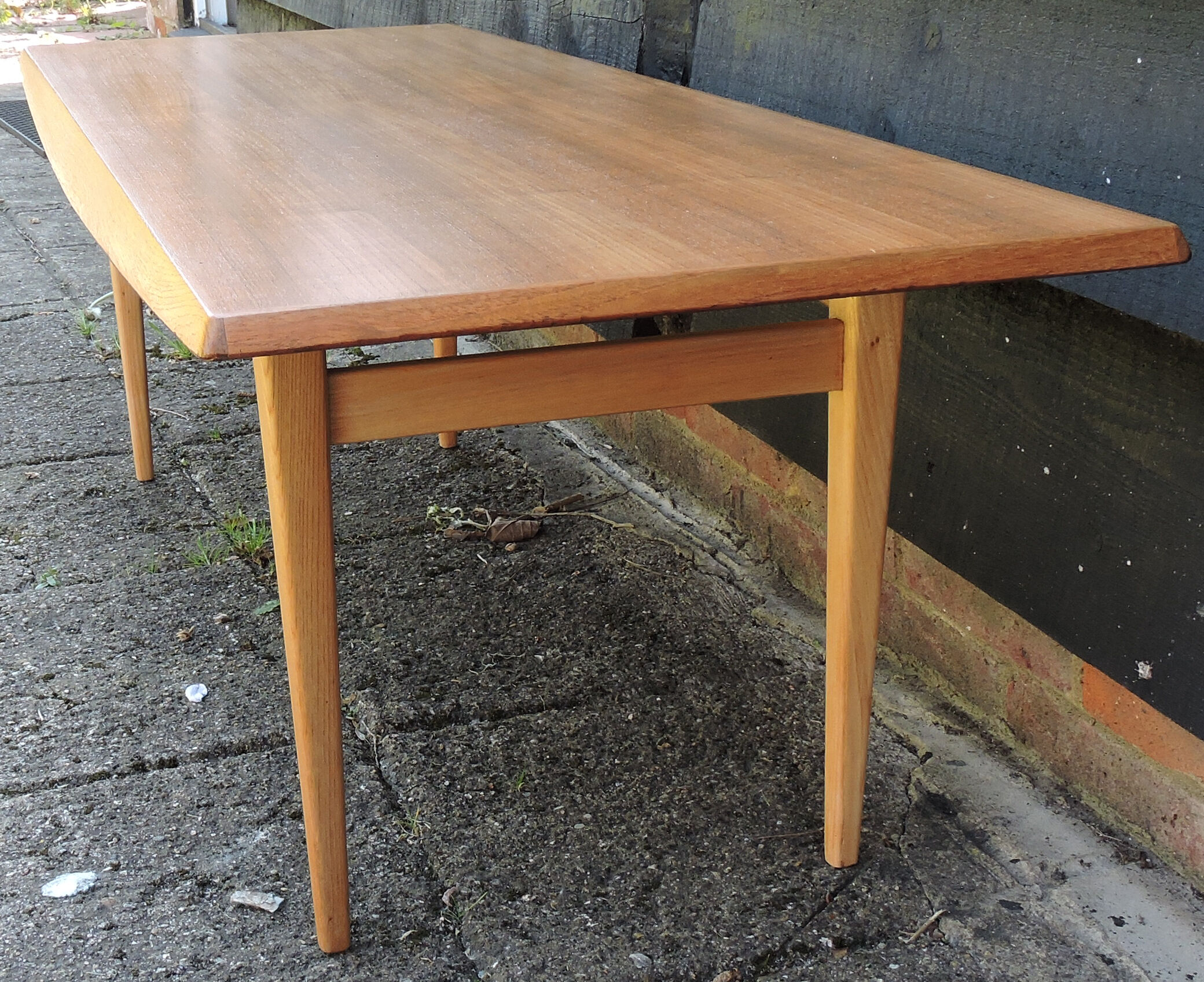 The table features a rectangular form on tapering legs with angled edges.